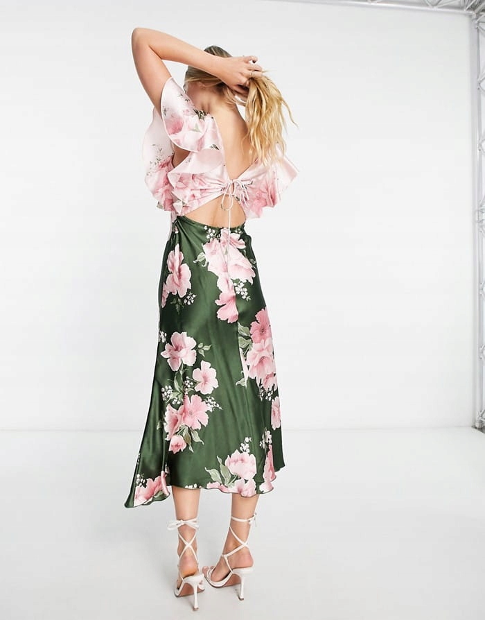 СУКНЯ ASO DESIGN з атласу з квітковим принтом (42)