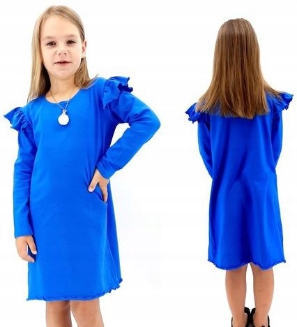 Сукня з довгим рукавом і воланами на плечах. Завдяки коротшій передній частині та довшій задній частині сукні вона чудово сидить! Ідеально підходить для щоденного використання та для великих заходів. Зроблено в Польщі.