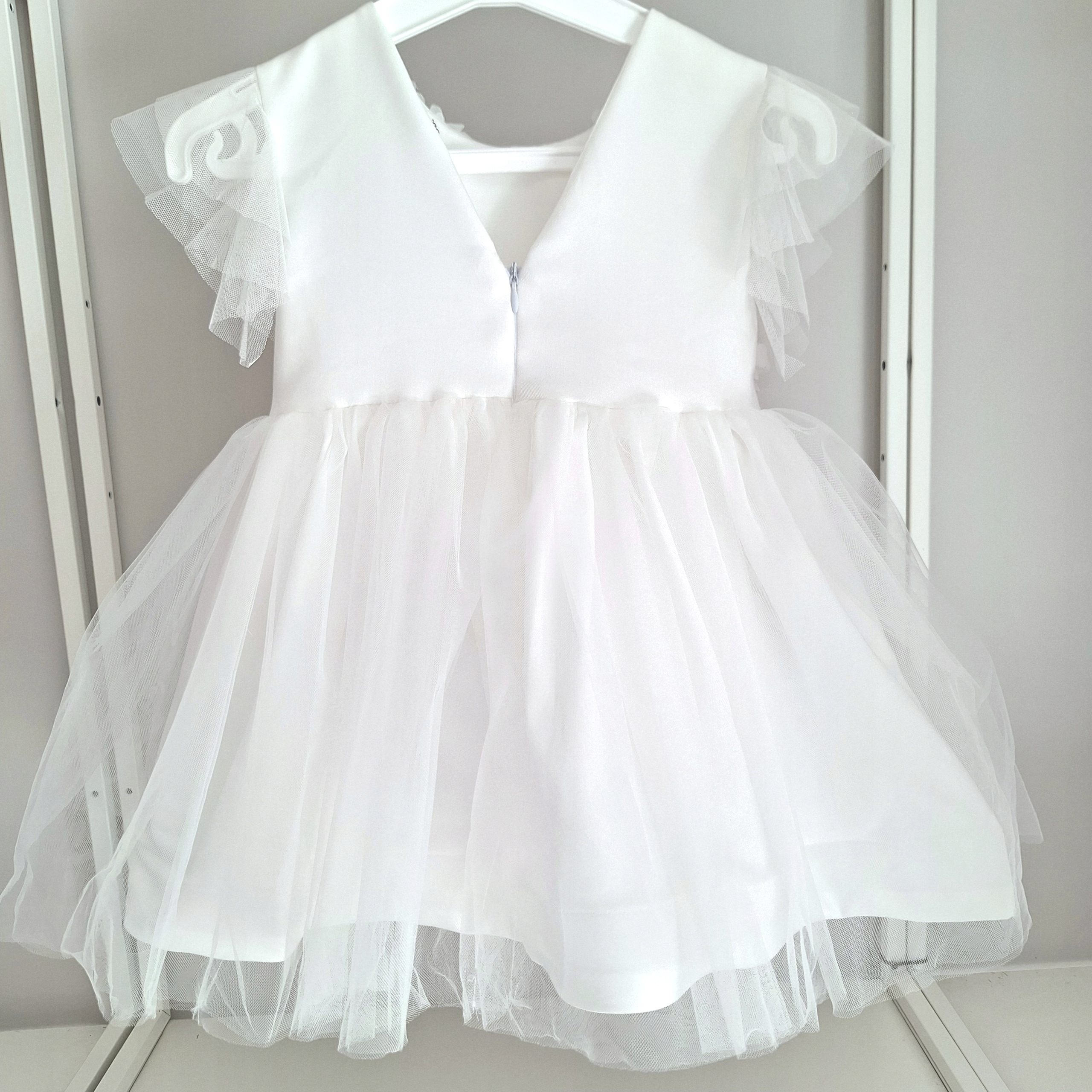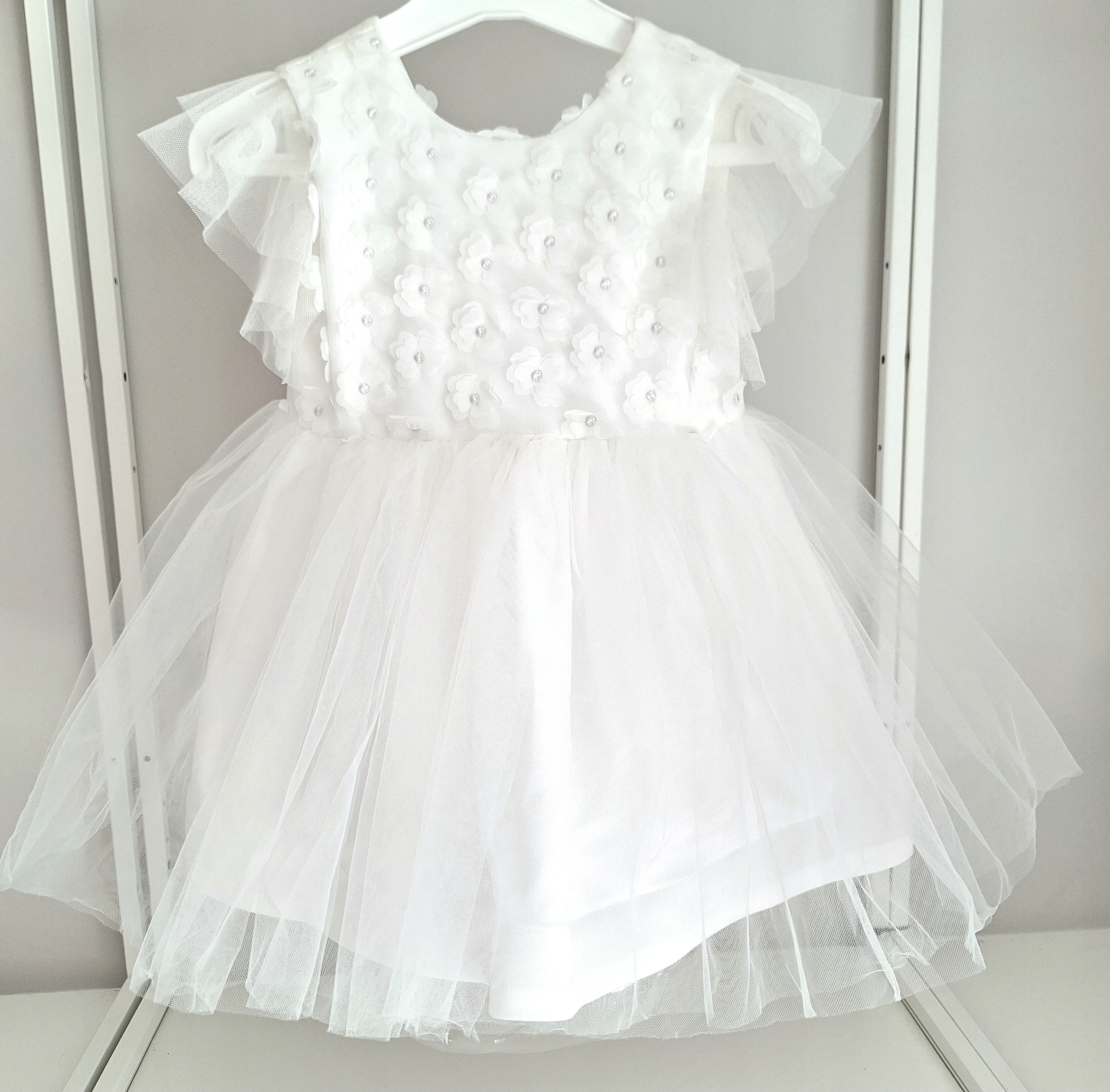 СУКНЯ ДІВЧИНКА З ТЮЛЮ НА ХРЕЩЕННЯ, ВЕСІЛЛЯ, РІК, 3D КВІТИ, БІЛА: 98