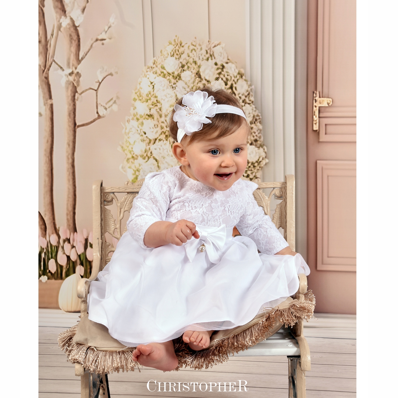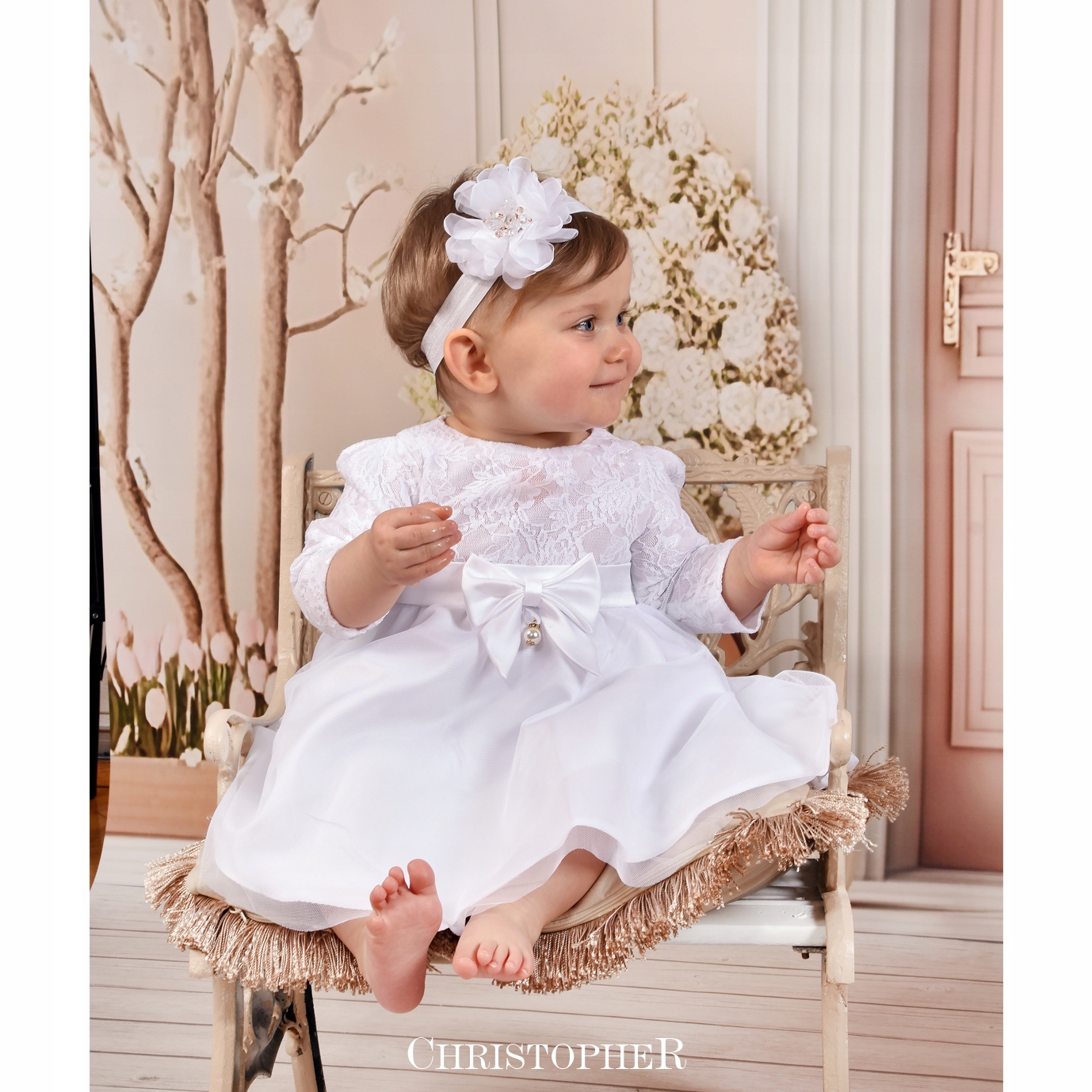 Сукня для хрещення МЕРЕЖИВО З ТЮЛЕМ БІЛА Крістофер 80 р