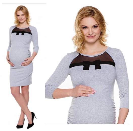 Сукня для вагітних Jasmine - доказ того, що під час вагітності можна виглядати модно та елегантно, не хвилюючись, що ви не підійдете до одягу. Ця надзвичайно жіночна модель виконана з приємної на дотик і еластичної тканини красивого сірого кольору. Ультражіночний виріз прикрашений модною прозорою чорною сіткою та закінчений бантом із стрічки посередині. У сукні для вагітних My Tummy ви почуватиметеся дуже комфортно не лише завдяки м’якому та приємному матеріалу, а й завдяки таким елементам, як рюші з боків, які маскують боки. Цю модель можна носити і після пологів, тож можна не хвилюватися, що одяг залишиться в шафі після закінчення вагітності. Будь-яка жінка, яка шукає вагітну офіційну сукню для офісу чи неофіційних зустрічей, неодмінно залишиться задоволена цією моделлю.