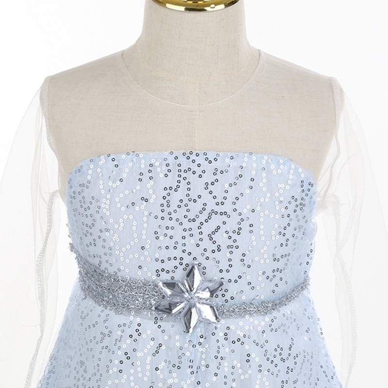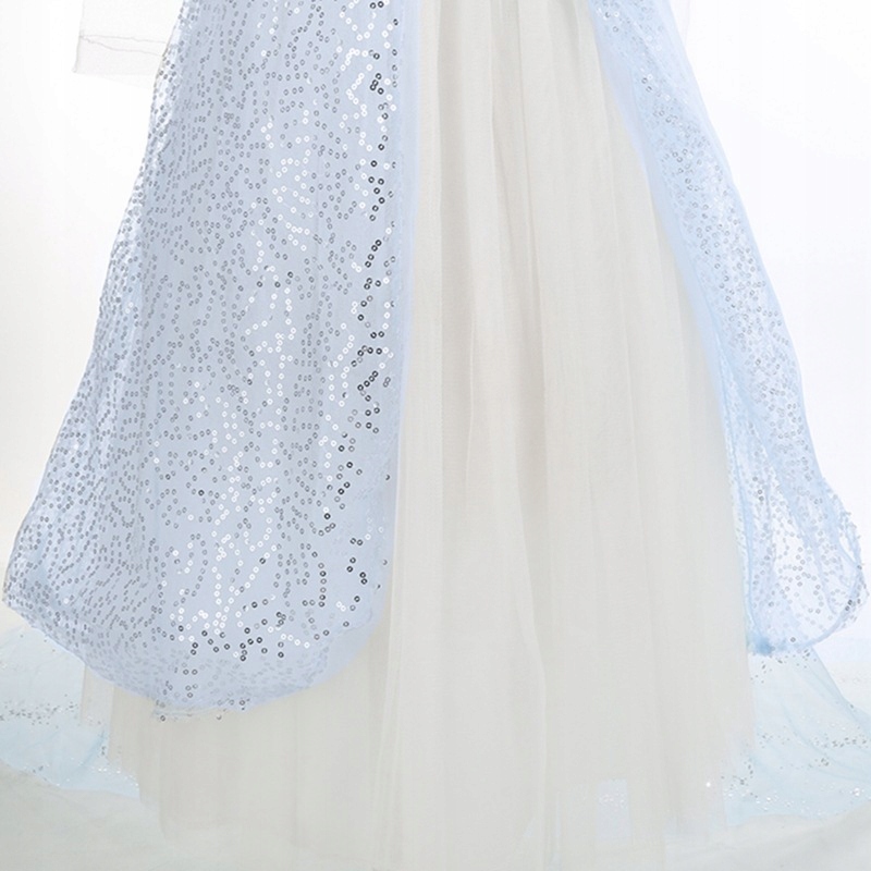 ✨ було б платтям Ельзи без характерного поїзда? У нашому платтях довгий, повітряний потяг, який можна прикріпити до спини кнопками. Це додає Королівського персонажа в наряд, і кожна дівчина, безумовно, відчує себе героїні її улюбленої казки під час кожної забави.