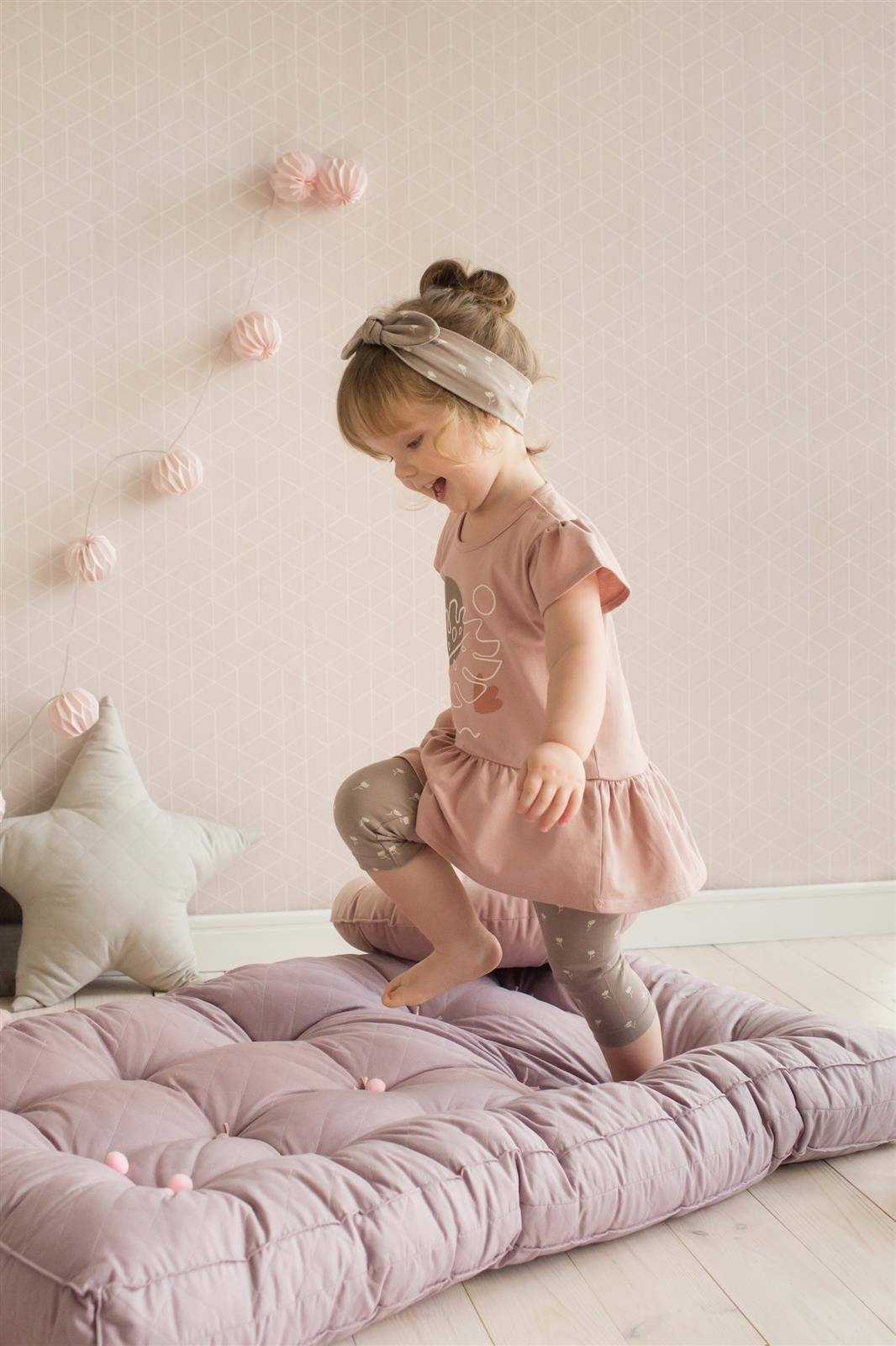 Туніка для дівчинки рожевого кольору з декоративним воланом внизу та рукавами з воланами. Ми розмістили принт листя на передній частині, виготовлений за допомогою безпечного методу фарби на водній основі, що забезпечує довговічність навіть після багатьох прань. У розмірах 68-92 на лівому плечі є зручні застібки, які полегшують одягання дитини. Для їх виготовлення використовувався пластик без вмісту нікелю. Туніка створить багато цікавих стилів з іншим одягом з колекції Tiny Flowers. Про це варто пам'ятати, комплектуючи літній гардероб вашої дитини.