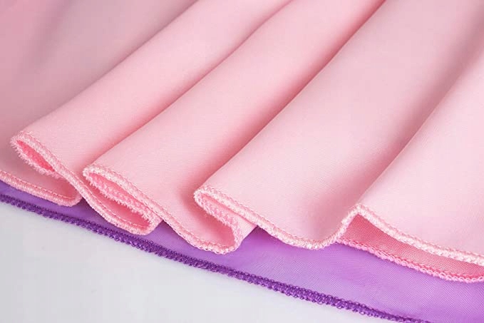 Сукня виконана з поліестеру з бавовною. Виробник подбав про найдрібніші деталі. Сукня красивих фіолетових і рожевих відтінків з красивими аксесуарами. Ретельна обробка, золото, гліттерні прикраси по низу сукні.