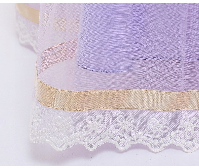 Низ складається з чотирьох, міцно зібраних шарів: два шари рожевого тюлю та два шари фіолетової підкладки.