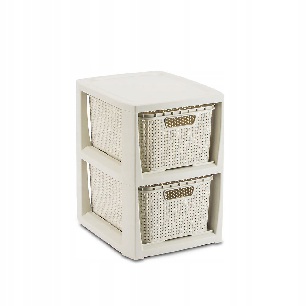 Виріб складається з 2 контейнерів, які виконують функцію висувних ящиків. Вони виготовлені з пластику, але виглядають як ротангові кошики. Завдяки цьому вони виглядають дуже естетично.