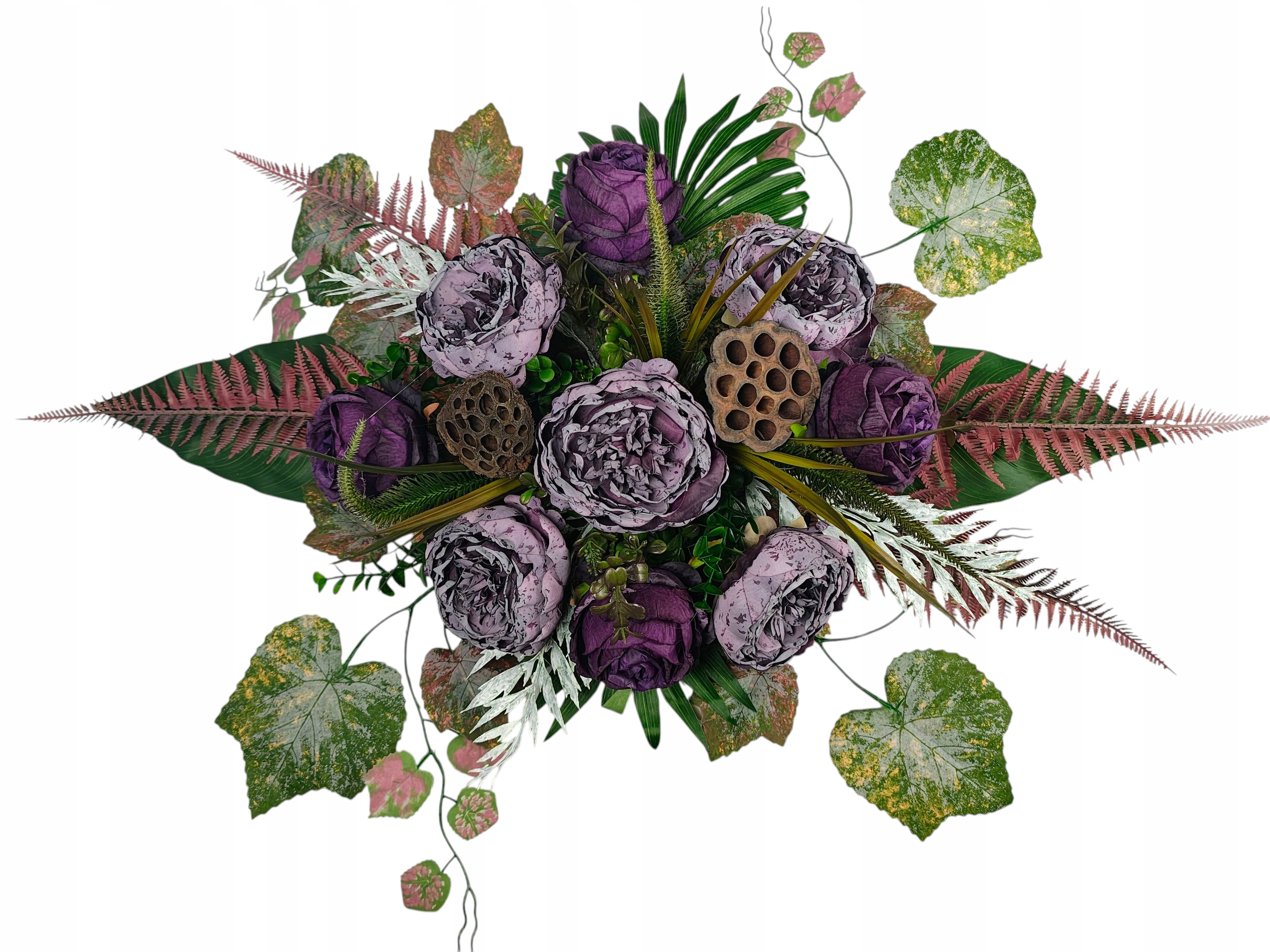 Прикраса була розроблена для гідного та красивого вшанування близьких людей. Пишна композиція чудово заповнює простір на надгробному камені, створюючи виразну, але в той же час тонке оздоблення. Вставка вази була створена таким чином, що вона може бути стабільно розміщена у класичних вазах надгробних каменів, завдяки яким ціле виглядає цілісним і елегантним.