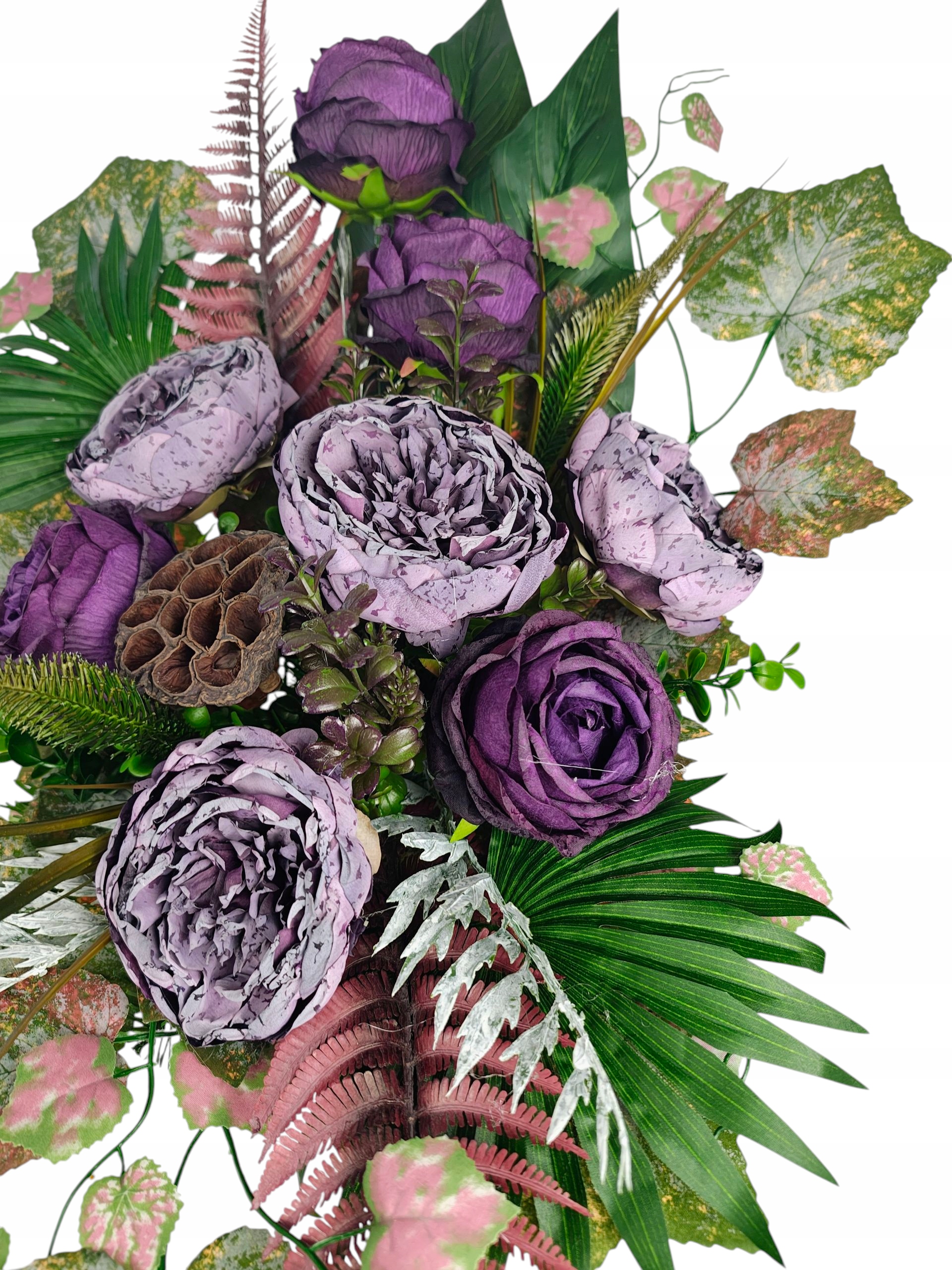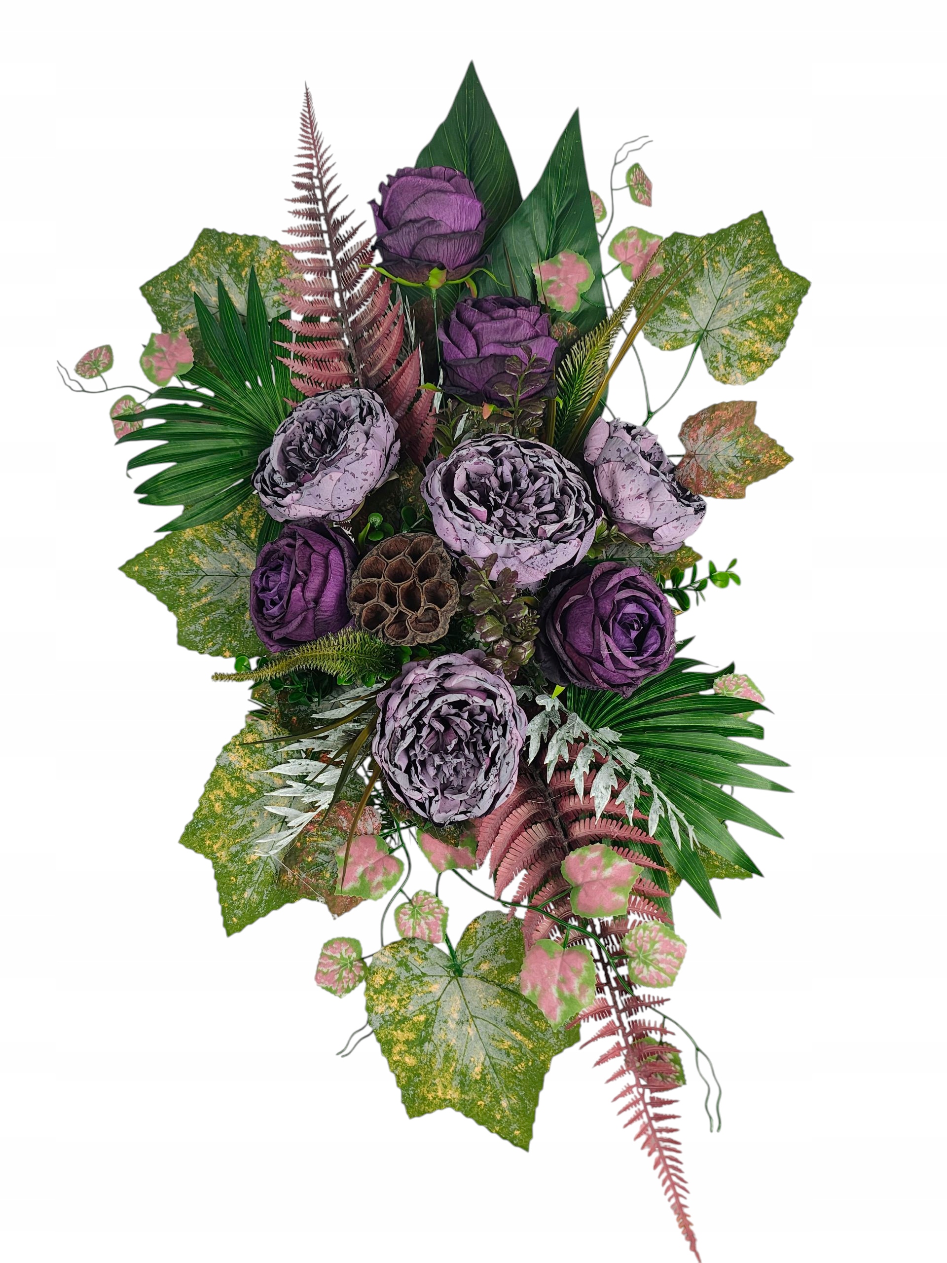 Ми представляємо унікальний набір могильних прикрас 2-в-1 , що поєднує класичну елегантність з довговічністю, забезпечуючи прекрасне та гідне прикрасу для місця відпочинку. Набір складається з двох ідеально відповідних елементів: вражаючого букету та стильної вази вази . Обидві композиції були створені з найвищою якістю штучних квітів, реалістична форма яких нагадує свіжі троянди та декоративні квіти, додатково підкреслені зеленими листям.