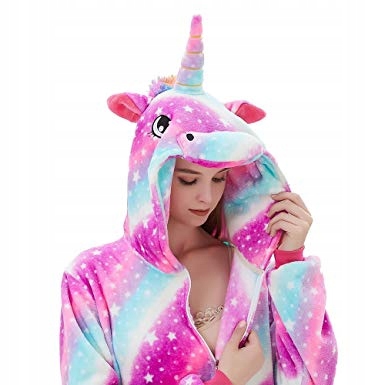 - комбінезон має чарівний капюшон із вушками та гривою з мотивом Веселкового ЄДИНОРОГА
