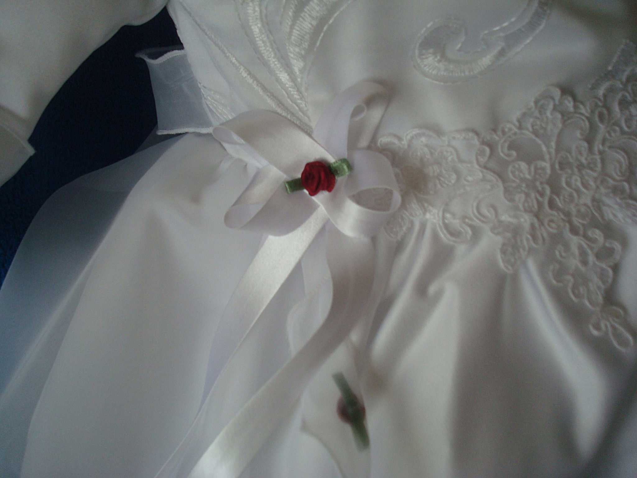 СУКНЯ МАЄ 2 ШАРИ ТЮЛЮ З АТЛАСНИЙ БАНТИК, ЗАВ’ЯЗАНИЙ ЗЗАДУ.