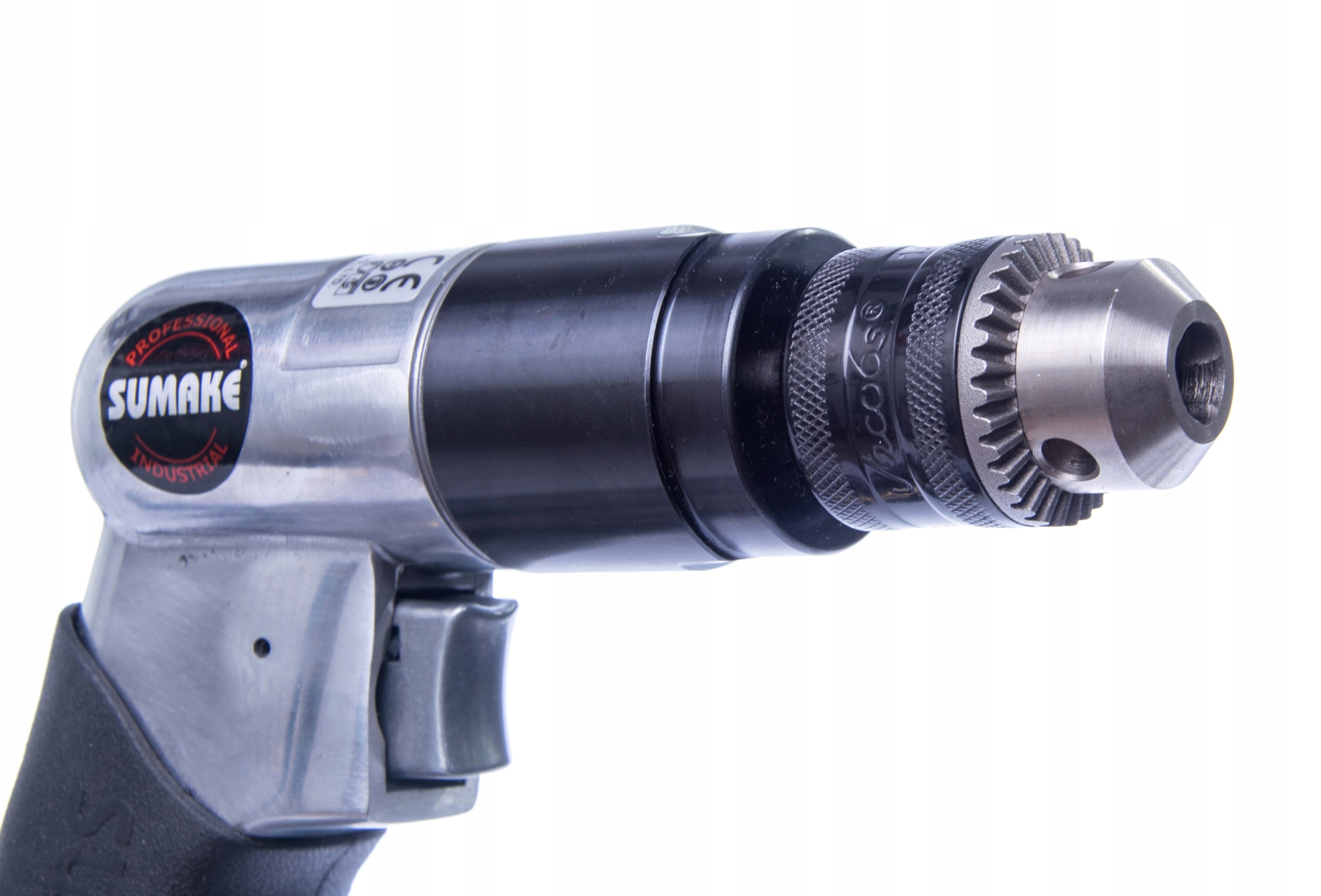 Пневматична дриль SUMAKE — це професійний інструмент, розроблений для роботи в найважчих умовах. Міцна металева конструкція. Оснащений свердлильним патроном зі шпонкою, що дозволяє надійно кріпити свердла діаметром до 10 мм.Простий у використанні завдяки зручному курку та перемикачу вліво/вправо. Планетарна передача зменшує оберти шпинделя і збільшує потужність пристрою. Незамінний при монтажних і сервісних роботах.