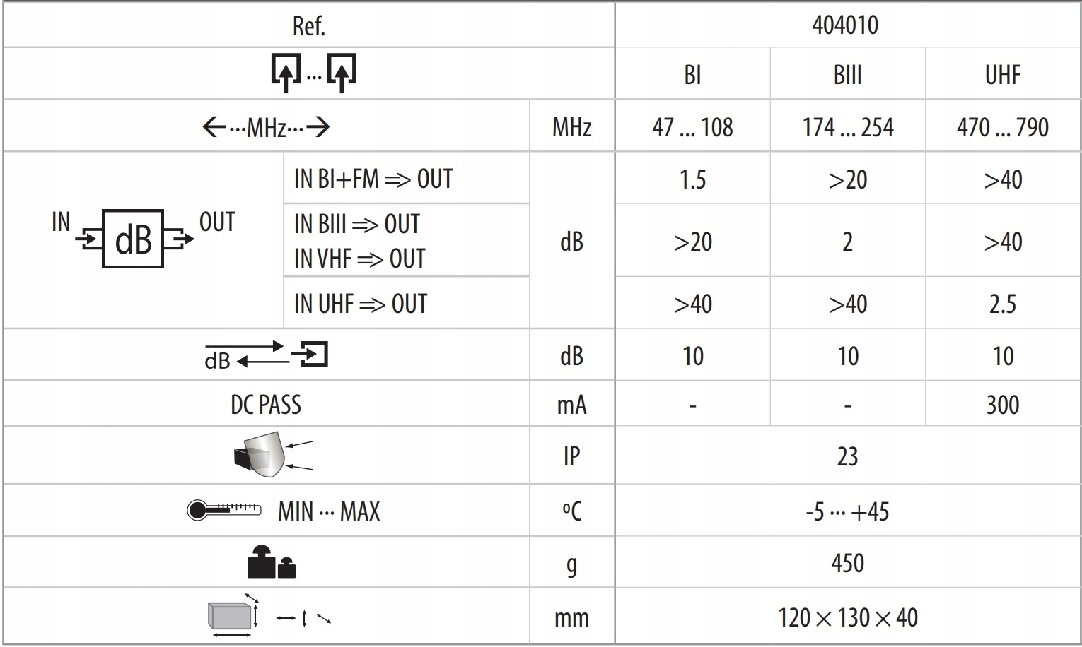 FM і DVB-T UHF і VHF телевізійний кросовер / DAB+ радіо Televes ref. 404010
