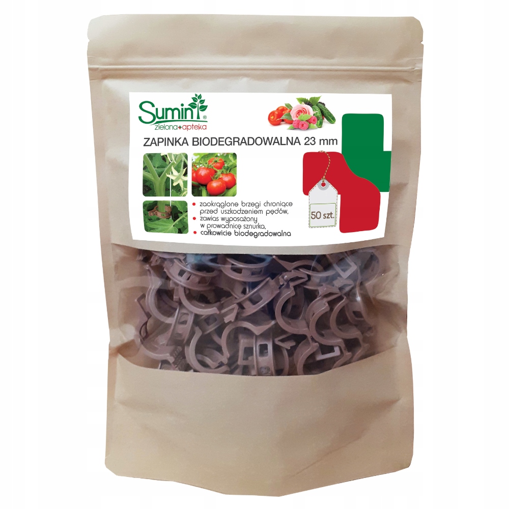 Біорозкладна кліпса Sumin стане в нагоді для прикріплення стебел томатів або огірків. Вона також підійде для багатьох декоративних рослин, наприклад, монстери, бамбука та квітів. Затискачі були розроблені таким чином, щоб бути безпечними для пагонів і не завдавати жодних пошкоджень. Вони дозволяють легко направляти пагін без необхідності обмотувати його навколо нитки та забезпечують належну підтримку навіть для важких рослин протягом усього періоду вирощування.