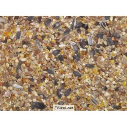Склад: пшениця, крупи вівсяні, сорго червоне, просо жовте та червоне, соняшник чорний, ірига, четвертинки кукурудзи, ячмінь безлушпиний, трава канаркова, гречка. Корм, виготовлений на основі натуральних інгредієнтів.
