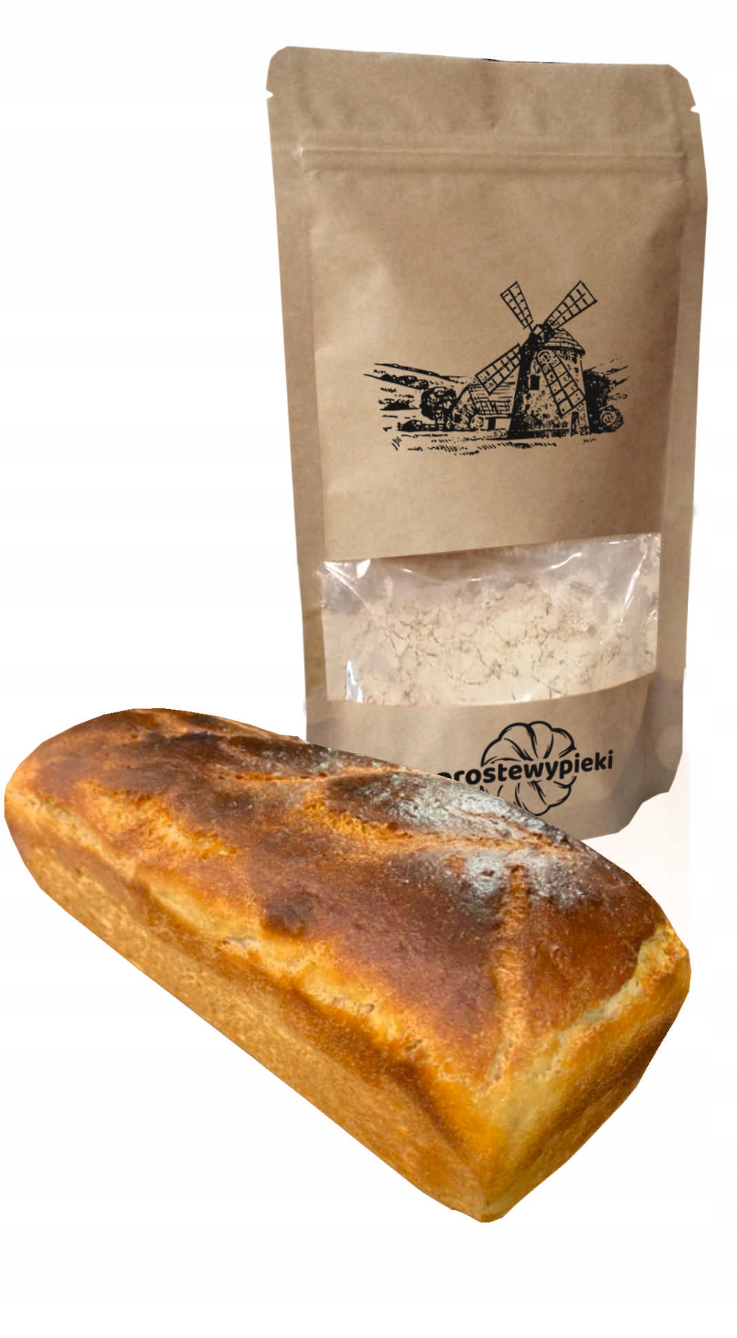 Хлібна суміш на основі пшеничного борошна грубого помелу 850 з невеликого млина в мальовничому селі на Підляшші з додаванням картопляних пластівців із сушеної вареної картоплі. Це 100% натуральний. Не містить покращувачів та штучних підкислювачів. Борошно, що міститься в суміші, перемелюється за кілька днів до відправлення, що гарантує найвищу якість продукту.