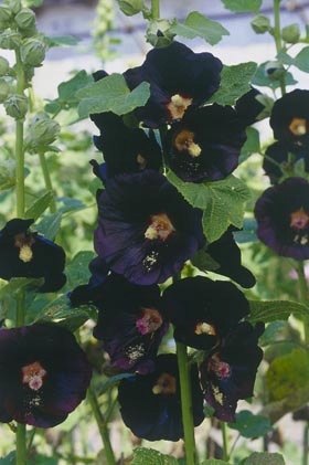 Мальва висока - досягає 150 см. дворічна рослина, що характеризується чудовими, вражаючими майже чорними квітками, які зібрані в колосовидні суцвіття. Особливо красиво виглядають при груповій посадці. Слизові сполуки, що містяться в квітках мальви, мають захисну та обволікаючу дію на слизові оболонки ротової порожнини та горла, а також полегшують відхаркування секрету, що залишився в горлі. Антоціани, що містяться в чорній мальві, мають протизапальні властивості. Квіт мальви чорної застосовують як протикашльовий засіб при катарах верхніх дихальних шляхів, запаленні слизової оболонки ротової порожнини та горла, бронхітах, захриплості та сухому кашлі. Він також використовується при захворюваннях шлунка та сечового міхура.