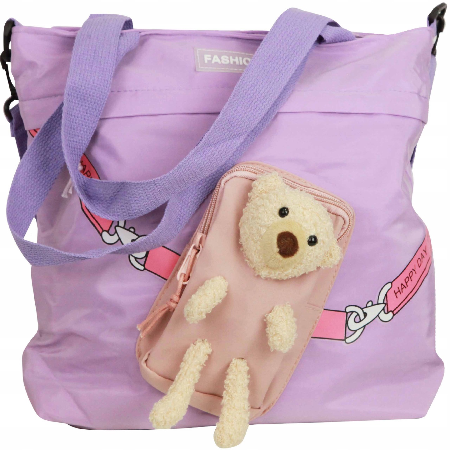 Дуже практична завдяки своїй формі. Сумка має довший регульований ремінь, який дозволяє зручно носити через плече, а також більш короткі лямки. На блискавці. Сумка має спереду простору кишеню на блискавці. Спереду є додаткова кишеня з ведмедиком, також закривається на блискавку. Всередині одне велике відділення плюс 2 маленьких кишені. Всередині сумки є підкладка.