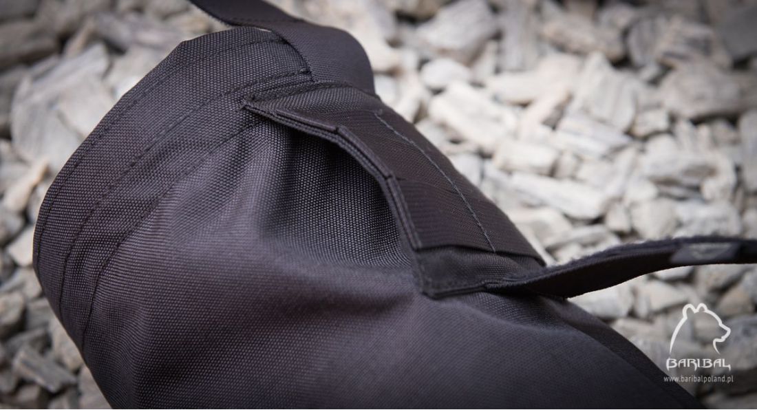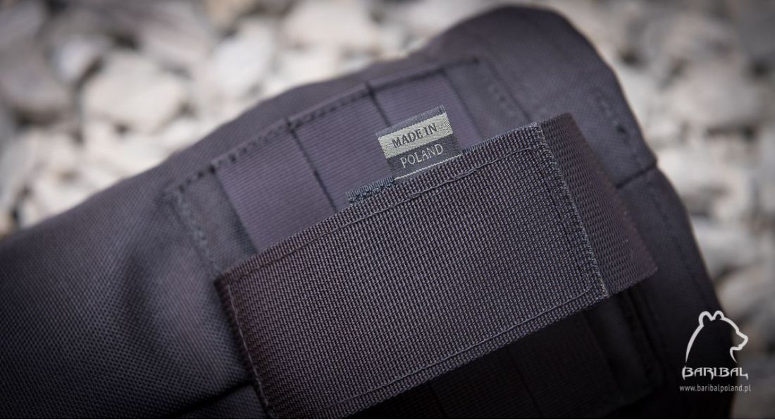 Мішок для сміття виготовлений з одного шматка Cordura, що забезпечує його міцність. Вшита в дно сітка запобігає накопиченню вологи та бруду. Ширина вхідного отвору рукава регулюється за допомогою міцного ударного шнура. Все це згорнуто та закріплено на панелі Molle за допомогою липучки. Верхня частина була посилена, щоб впускний отвір не згортався та зберігав овальну форму, що полегшує інтуїтивне вставлення магазину, запобігаючи його випаданню. Завдяки монтажним ременям ми можемо стійко закріпити панель на стрічках системи M.O.L.L.E., поясах або інших стрічках різної ширини.