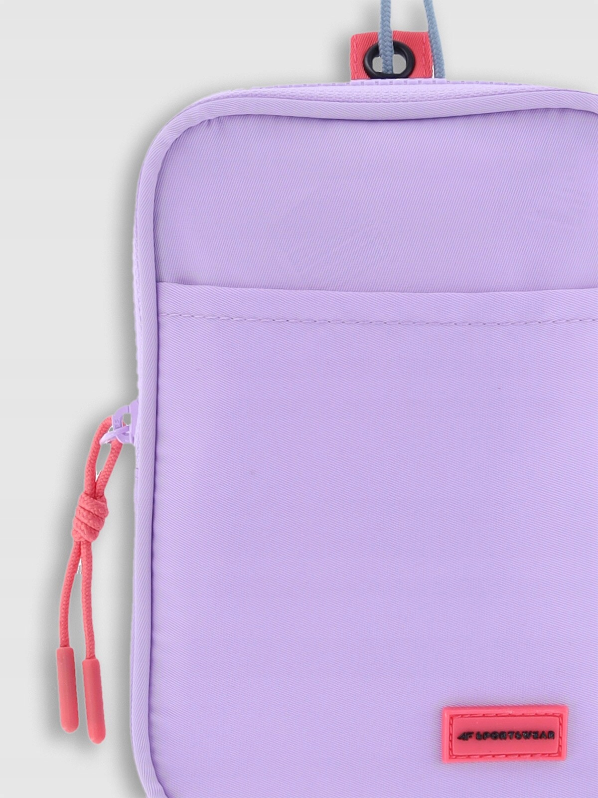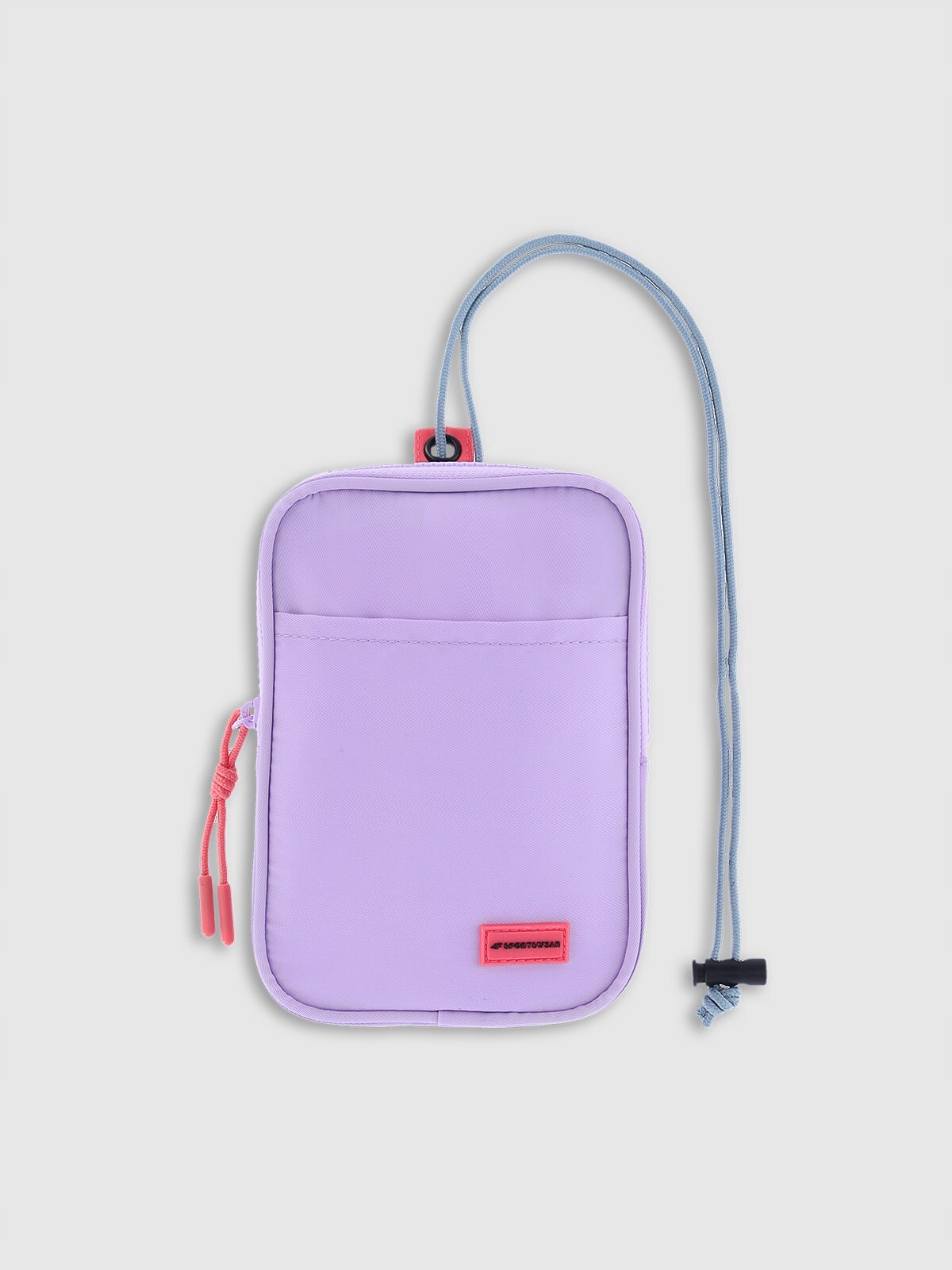 Нашийна сумка для телефону та документів, оснащена шнурками зі стопором. Основна кишеня застібається на односторонню блискавку. Спереду є кишеня без застібки.