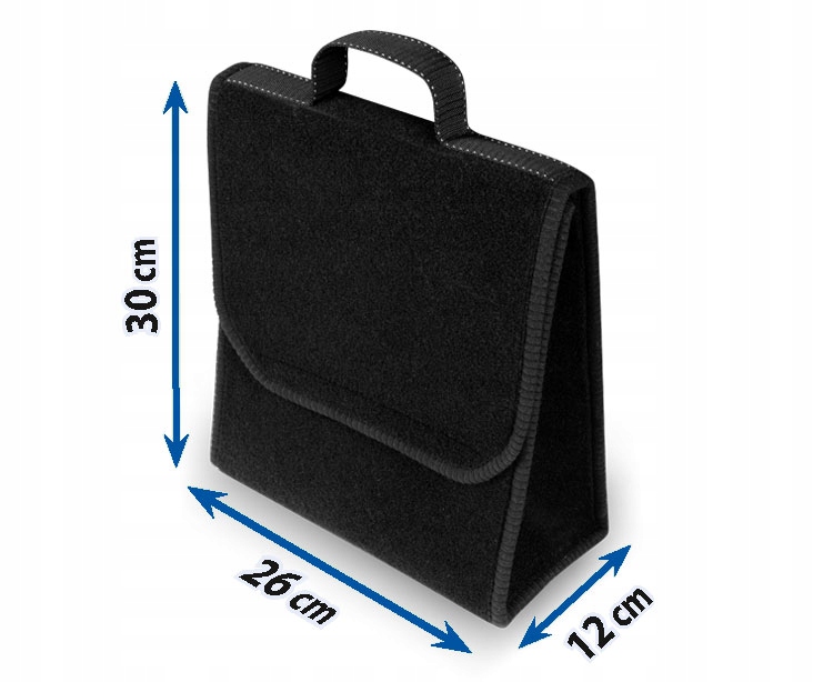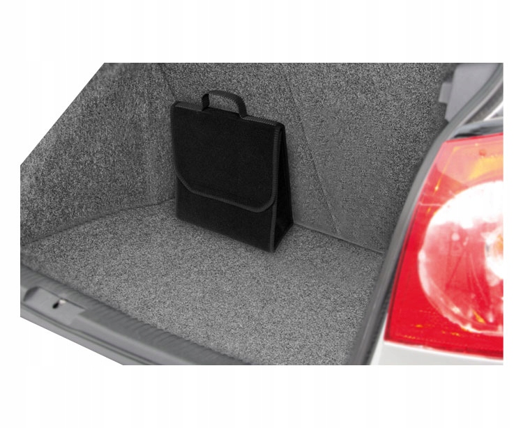 Надзвичайно практична сумка-багажник, виготовлена з повторюваного килимового матеріалу з міцною липучкою на дні та на задній стінці сумки, дозволить зберігати багато речей – навіть важких та гострих. Допоможе підтримувати порядок в салоні автомобіля; захистить предмети та внутрішню частину багажника від можливих пошкоджень. Він має зручну вертикальну форму, що дозволяє зберігати п'ятилітрову ємність моторного масла або рідини для омивання вітрового скла або кільовий вогнегасник, а також інші інструменти, необхідні в автомобілі, набір лампочок, аксесуари тощо. Завдяки міцним великим липучкам, що проходять по всій довжині сумки, вона добре утримує килим багажника. Він дуже місткий. Має регульовану «кришку», яка застібається на липучку. Не займає багато місця. Завдяки ручці його легко переносити. Виготовлений у чорному кольорі, він характеризується надзвичайною функціональністю та елегантним зовнішнім виглядом.