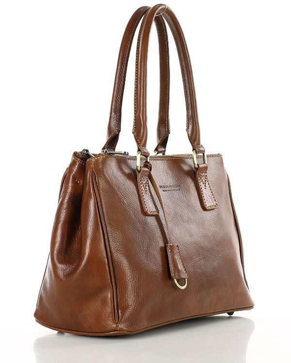 Кожна сумочка, виготовлена в дубильному районі Тоскани, є шедевром майстерності, що поєднує традиції з найвищою якістю виконання. Сумка виглядає надзвичайно елегантно, додаючи тонку нотку розкоші вашому вбранню. Виготовлений з високоякісної натуральної коров'ячої шкіри - рослинного дублення з рослинними інгредієнтами без синтетичних добавок в Тоскані. Цей вид шкіри є найвищою ЯКІСТЬ ПРЕМІУМ, що характерно для шкіряних виробів, які виготовляються в кращих шкіряних майстернях Тоскани, в тосканському районі дублення. Натуральна шкіра рослинного дублення старіє, але не псується. Цей процес дублення гарантує міцність шкіри та її довговічність. В процесі використання шкіра набуває благородного вигляду. Усі механічні дефекти зникають самі по собі або після протирання вологою бавовняною тканиною.