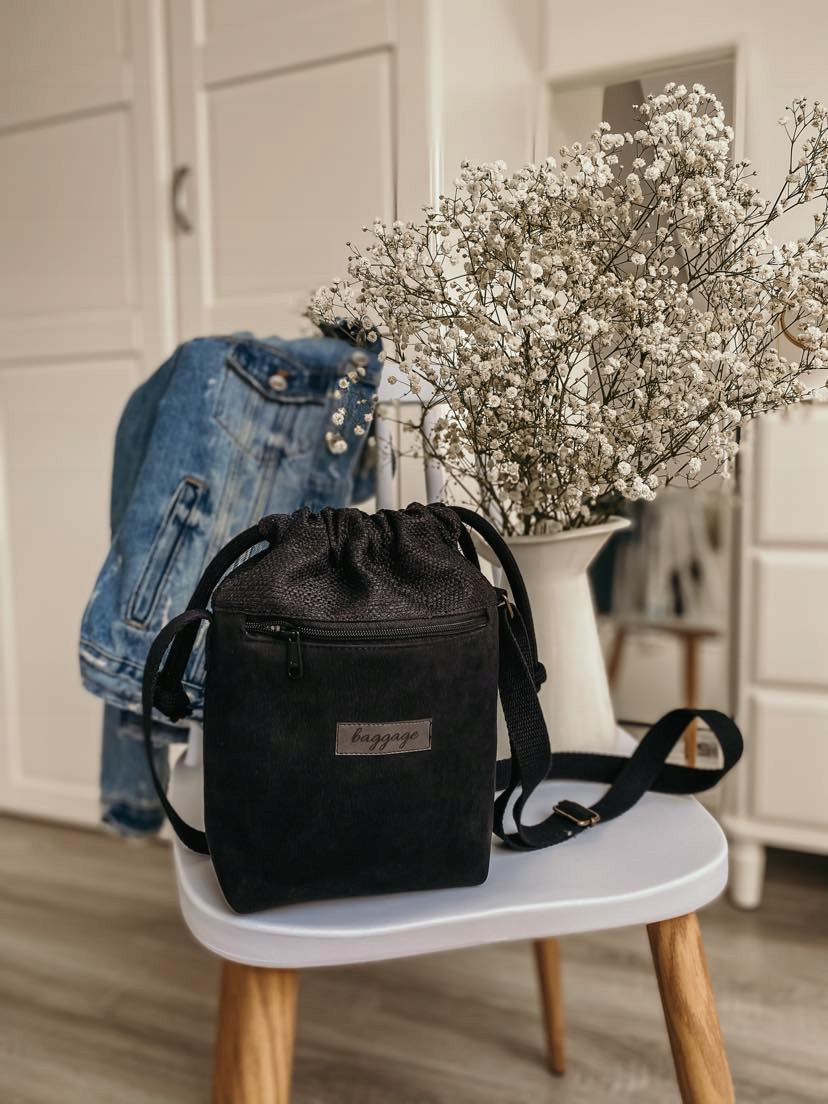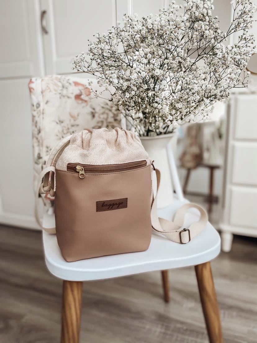 Виготовлені з високоякісних тканин: екошкіра та поліестер. Сумка застібається на бавовняний шнурок.