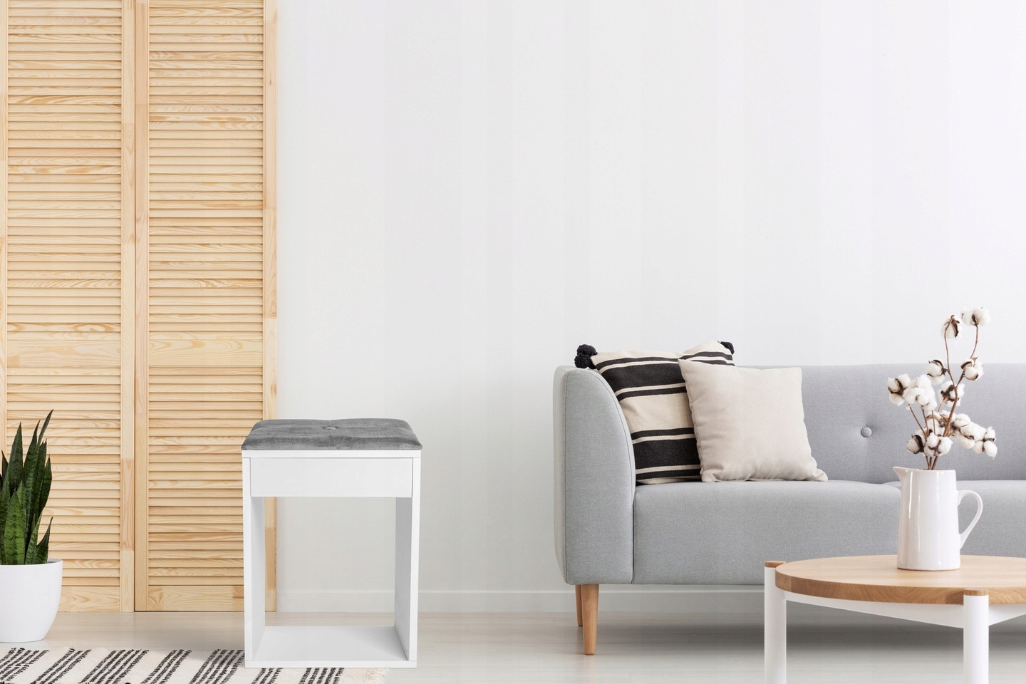 Виготовлена з високоякісних матеріалів. Сіра оббивка приємна на дотик і міцна, з використанням матеріалу "Velvet". Корпус МДФ міцний і забезпечує стійке положення пуфа. Завдяки тонкому дизайну його дуже зручно та легко носити.