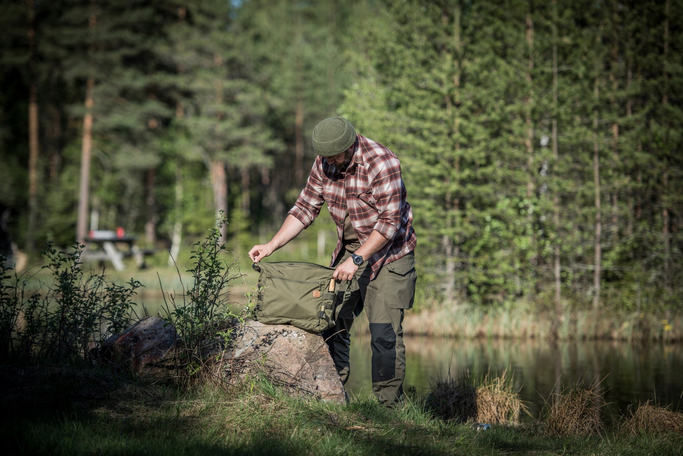 Bushcraft Satchel® — це наша універсальна позашляхова сумка. Його можна носити і як контейнер під час одноденної поїздки в поле, і під час повсякденних міських справ. Він надзвичайно просторий. В основному відділенні для додаткової зручності ми розмістили сітчасту кишеню на блискавці (для цінних речей) і дві кишені з еластичною обробкою, в які можна покласти, наприклад, пляшку. Зовні сумка оснащена великою кишенею на блискавці і двома відкритими кишенями. Панелі MOLLE/PALS з боків і стрічкові ремінці внизу Satchel® дозволяють прикріпити додаткове обладнання. Компресійні ремені дозволяють регулювати розмір сумки.