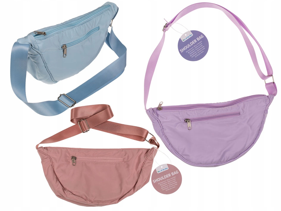 Легка, практична та неймовірно чарівна - ця сумка через плече є поєднанням комфорту та стилю, які вам потрібні щодня. Виготовлений з міцного нейлону, він радує своєю напівкруглою формою і модними пастельними кольорами: світло-рожевим, фіолетовим або блакитним. Завдяки регульованому ремінцю він буде ідеально сидіти по вашій фігурі - ви можете носити його так, як вам більше подобається!