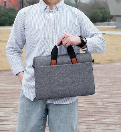 Якісний, стильний чохол для ноутбука або планшета з поліестеру Універсальний дизайн робить цю модель сумки ідеальним вибором як для чоловіків, так і для жінок і ідеально вписується в повсякденний, повсякденний і діловий стиль. Всередині сумка обшита м'яким антипригарним матеріалом, який забезпечує додатковий захист для ноутбука та зменшує ймовірність пошкодження, наприклад, після падіння. Забезпечує легке вставляння та виймання ноутбука. Він має ручку, завдяки якій його легше переносити. Додатково , в комплект входить плечовий ремінь, щоб вам було комфортніше пересуватися.