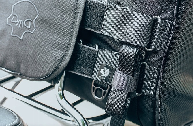 - містить універсальну систему кріплення, адаптовану до всіх типів ручок (Sissy bars)
