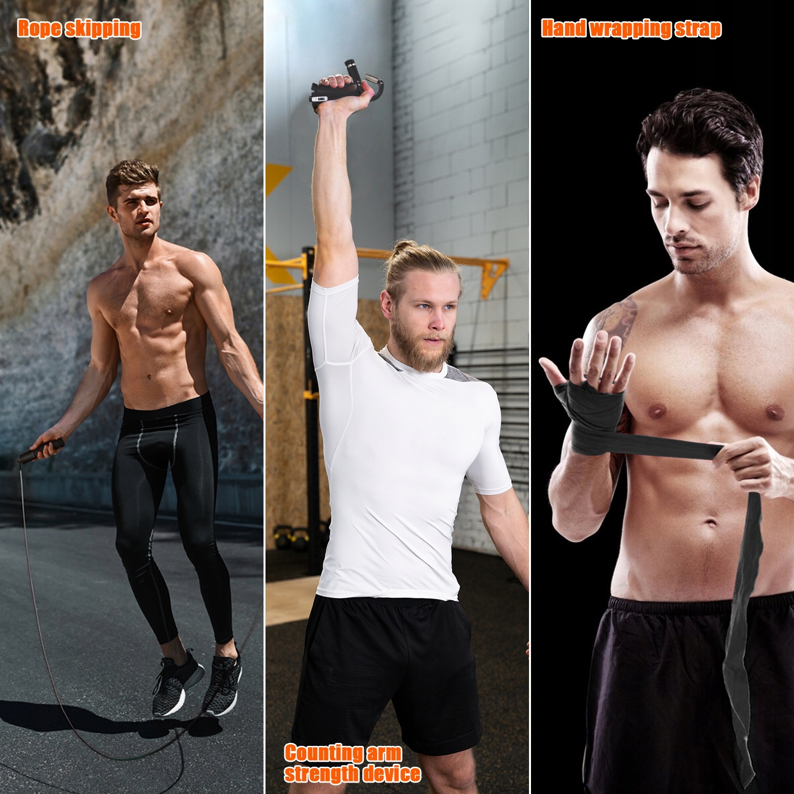 містить підрахунок пропуску мотузки , пристрій для міцності підрахунку зброї та 360 ° ротатора , що допоможе вам розвинути силу, спритність та координацію.