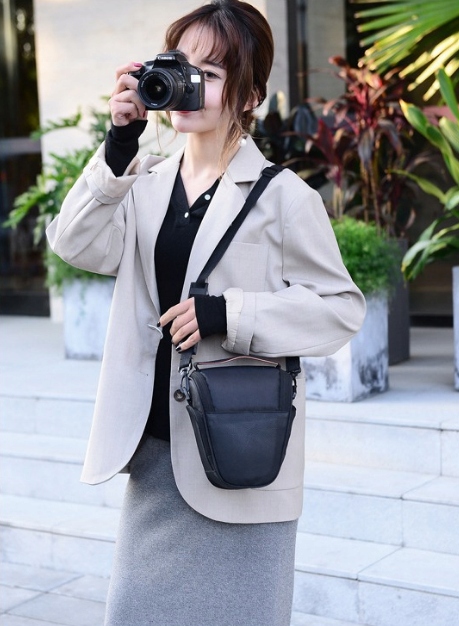 У нього легко поміститься камера середнього розміру з об’єктивом.