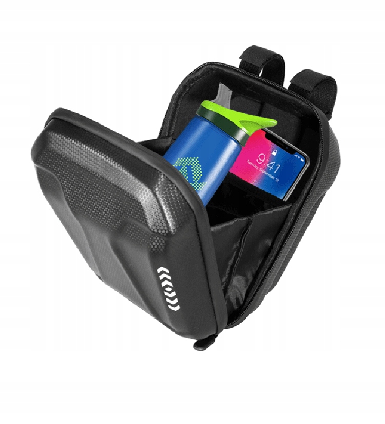 - Конструюється на кермі за допомогою 4 стрічки на липучці (дві горизонтально і дві вертикально). Ремені постійно прикріплені до сумки. Збірка проста та швидка