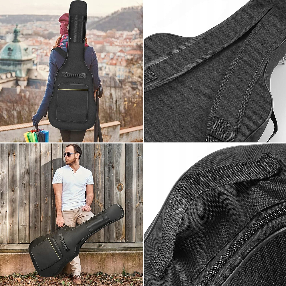 Подвійний шлях для транспортування. Чохол для гітари має регульовані ремені та ергономічні посилені ручки, зручні та практичні. Крім того, є дві передні кишені, які забезпечують достатньо місця для аксесуарів для гітари.