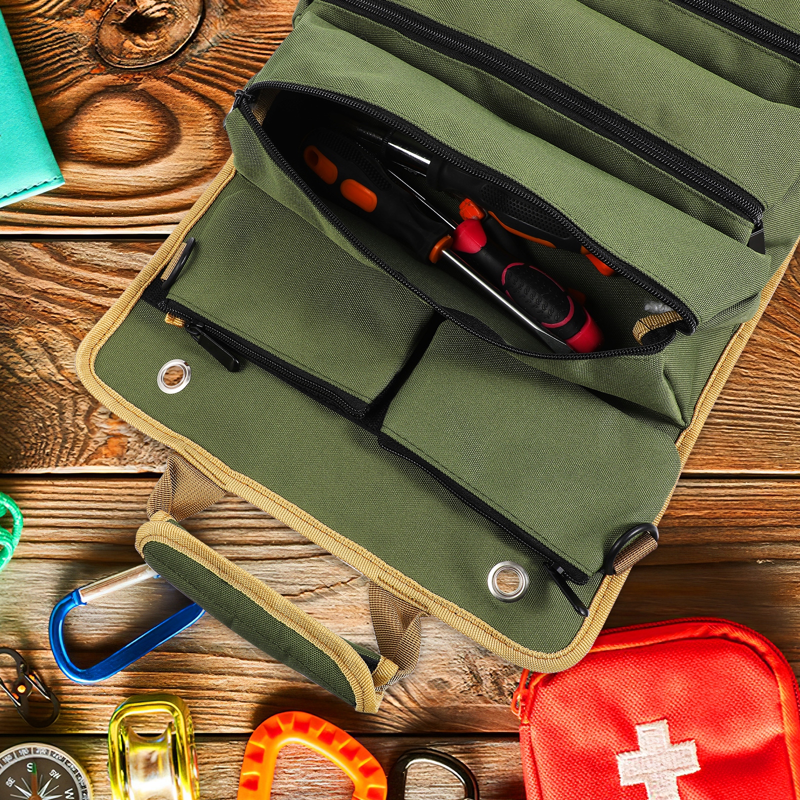 ✅ Безпечне закриття: липучки та затискачі застібки безпечно зберігають інструменти всередині та захищають розгорнуту сумку, щоб запобігти випадковому розгортанню. 4