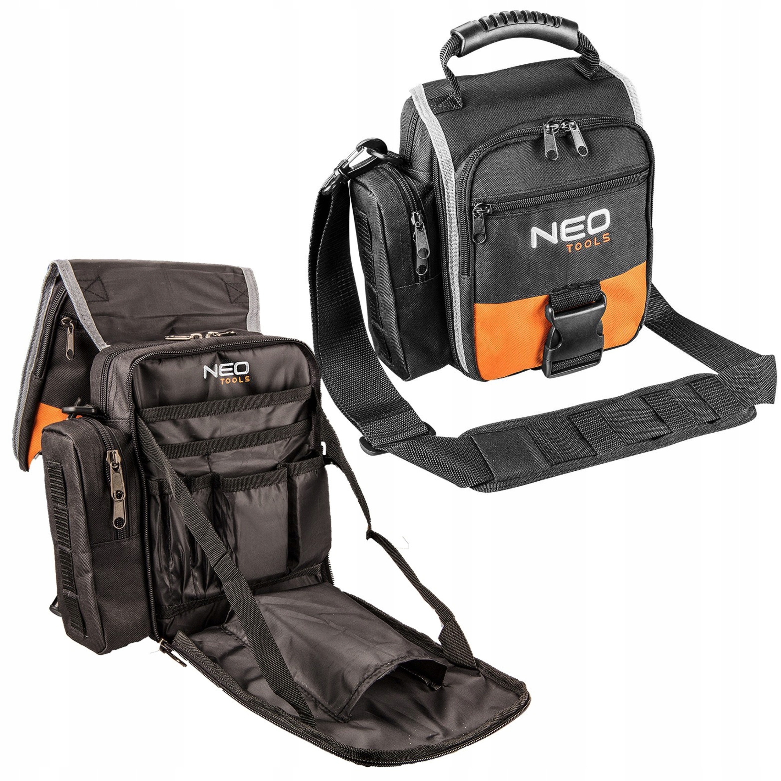 Сумка для інструментів NEO (арт. 84-315) з армованого поліестеру, має 4 зовнішні та 4 внутрішні кишені. Містке основне відділення вмістить багато інструментів. Додатковою перевагою є складна конструкція, що полегшує роботу. Сумка має регульований плечовий ремінь, ручку для перенесення та гачки для пояса для зручного використання.