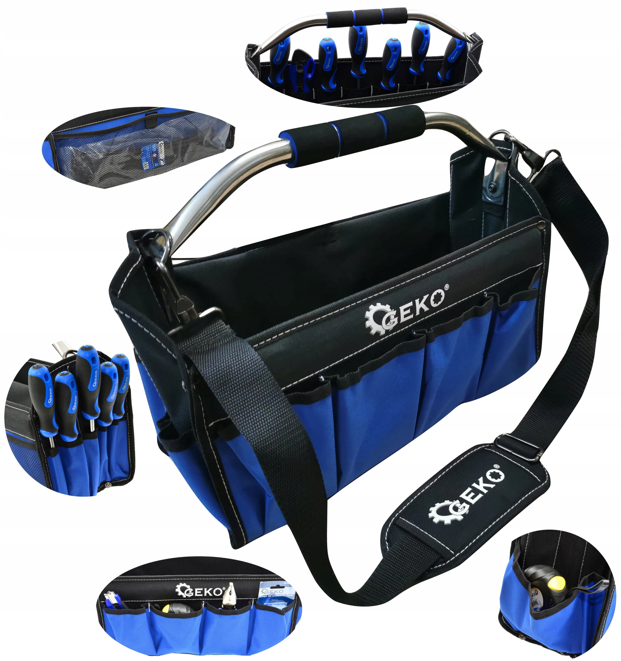 Відкрита сумка для інструментів із металевою ручкою та 18 кишенями