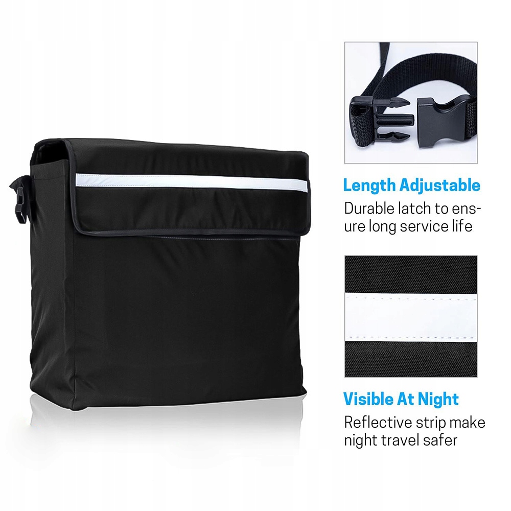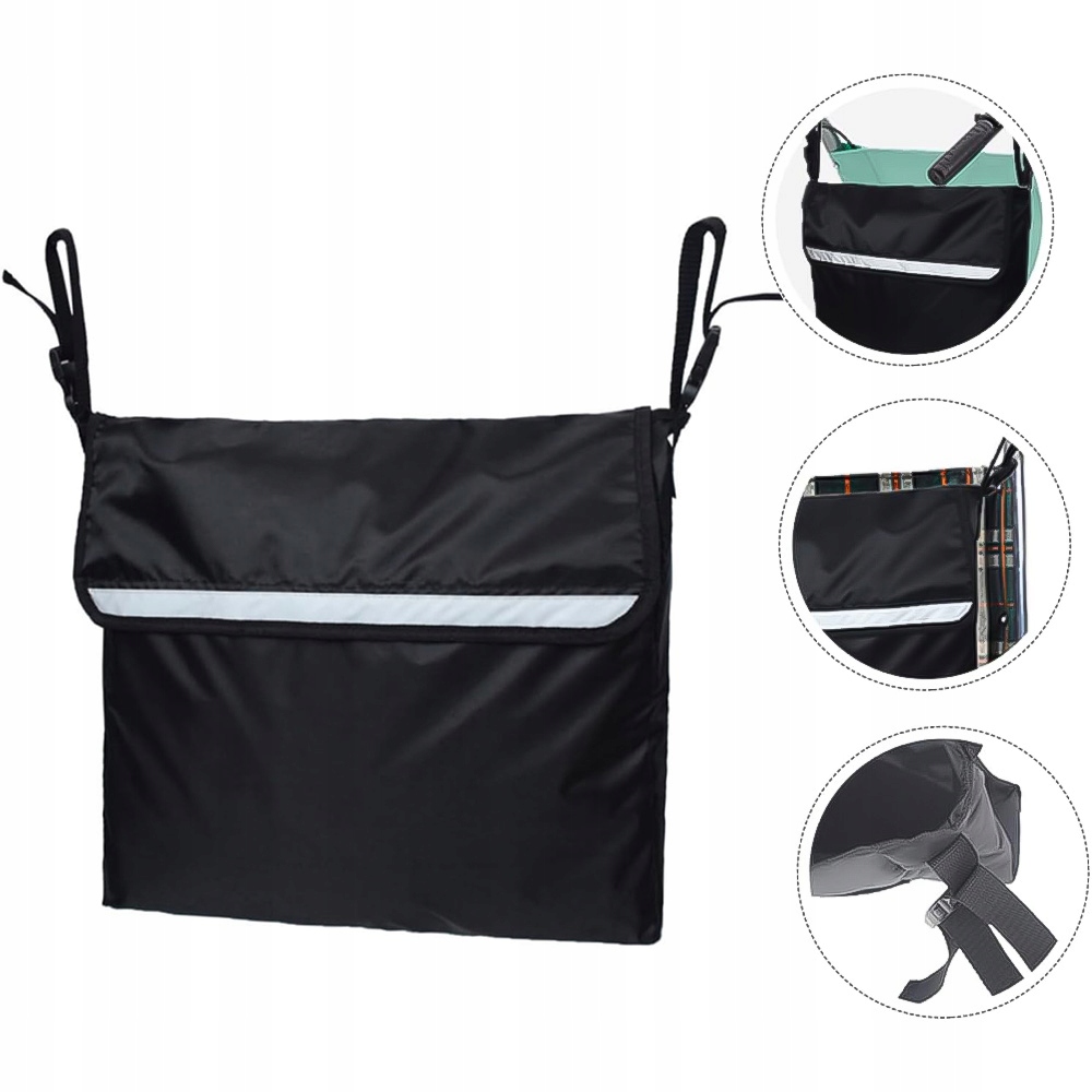 Регульовані ремінці: суцільні та прості у встановленні смужки дозволяють швидко виправити або зняти мішок з візку. Система кріплення проста у використанні навіть для людей у власному інвалідному візку. Крім того, він оснащений світловідбиваючими смугами, збільшуючи видимість у темряві.