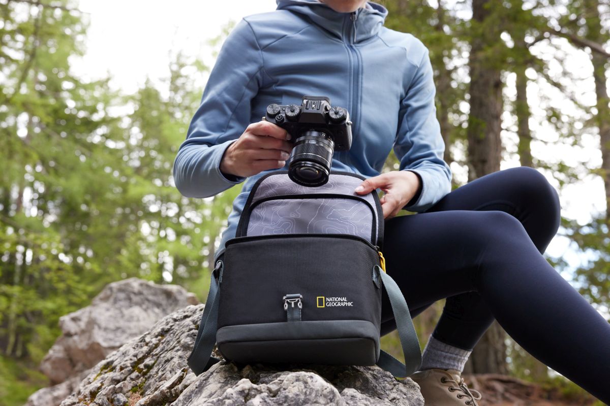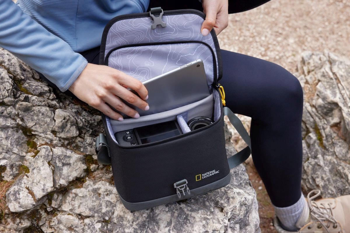 Середня сумка National Geographic призначена для бездзеркальної фотокамери або дзеркальної камери з об’єктивом, двома додатковими об’єктивами та меншими аксесуарами.