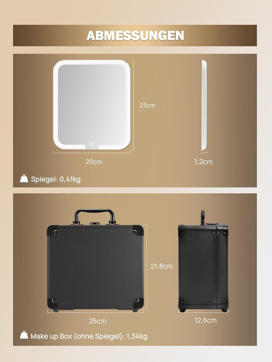 Коробка для макіяжу виготовлена з високоякісних табличок та алюмінієвої рами. Він твердий і довговічний, він може протистояти тиску без пошкоджень або деформації. Наш косметолог - 25 х 21,8 х 12,6 см і ідеально підходить для подорожей. Це компактне, але пропонує достатньо місця для косметики.