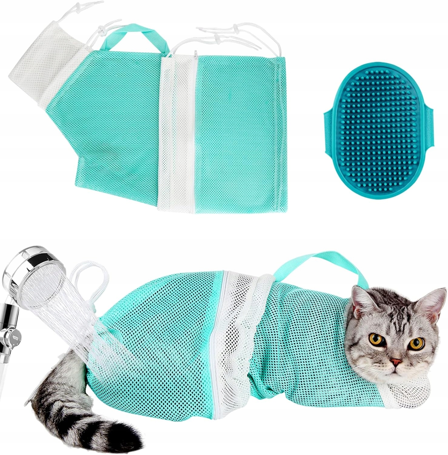 - 【【блискавки та структуру з струною】 мішок для душу кота, легко очистити лапи і нарізати нігті. Струни можуть регулювати герметичність сітчастої сумки кішки і легко вийти і вийти на великих або маленьких котів, щоб вони могли насолодитися часом купання