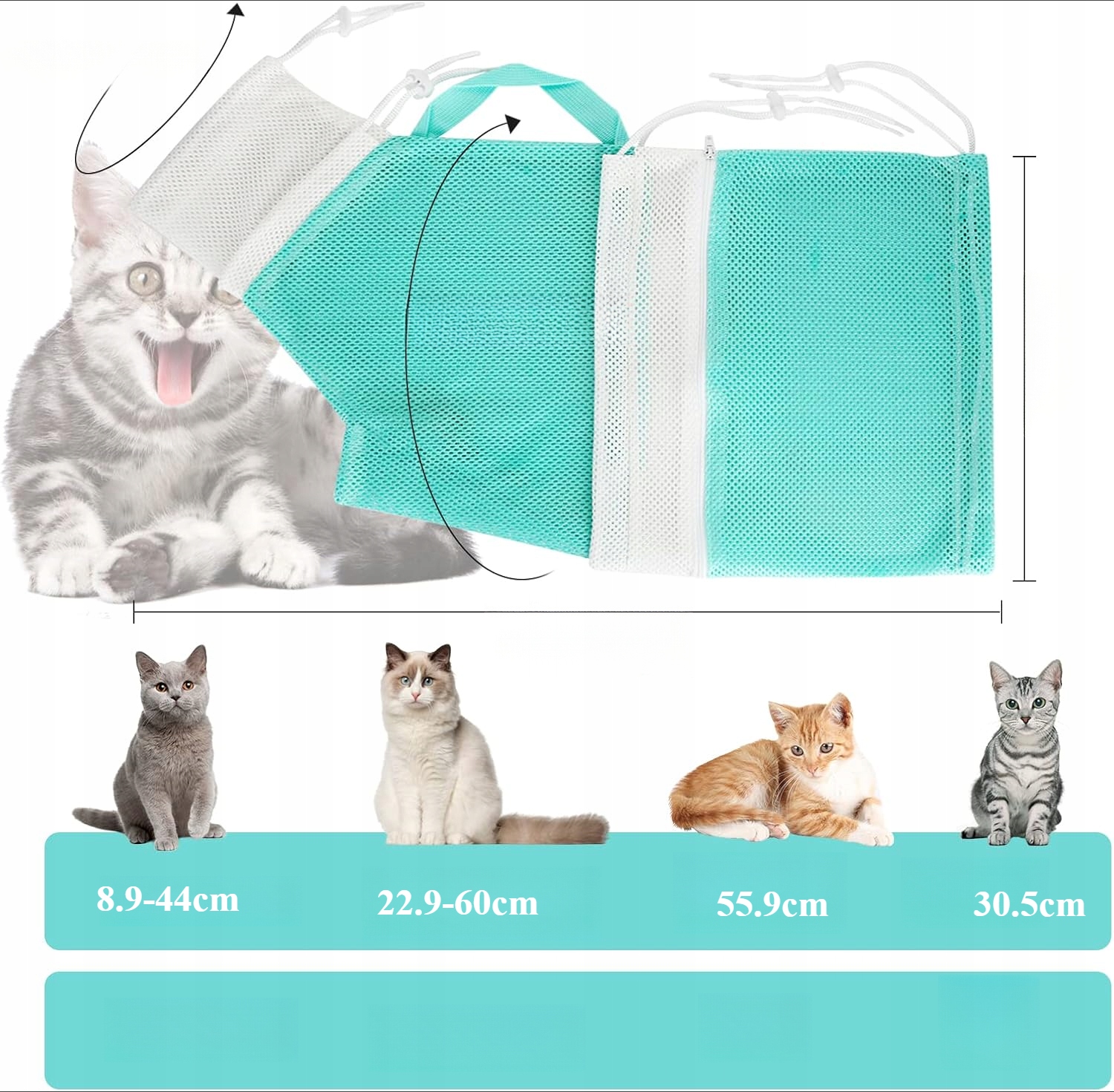 - 【【antibite & anti-scratch】 мішок для купання для кішки включає цілу частину кота, легкий і ефективний для управління котом, допомагає уникнути відлякування кота, завдяки якому догляд за котом та сафер 【 Близько 22 дюйма довжини тіла, висота 12 дюймів, 3,5 до 17,3 дюйма окружності шиї та від 9 до 23,6 дюйма в окружності грудної клітки. Підходить для більшості типів та розмірів котів, зменшення навантаження, пов'язаного з очищенням та доглядом за котів