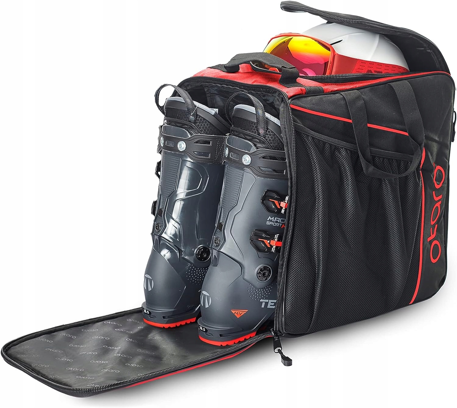На додаток до кількох варіантів зберігання аксесуарів, сумка містить невелику функцію, яка значно полегшує зміну взуття. Додатковий клапан забезпечує місце для одягання та зняття лижних черевиків миттєво, не ризикуючи промочити ноги
