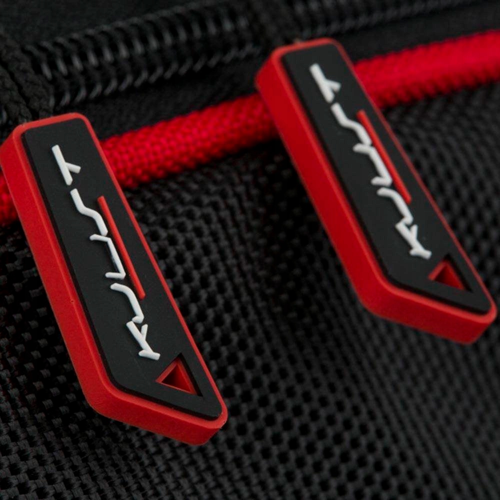 - узгоджених кольорів: усі сумки Kjust мають однакові кольори (чорні, білі та червоні деталі) та вишитий логотип li>