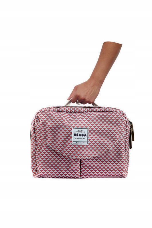 Надзвичайно функціональна та дизайнерська сумка для мам від французького бренду BEABA. У нього можна легко помістити необхідні дитячі аксесуари та зручно їх розмістити. Сумка виконана в червоних кольорах, має унікальний трикутний малюнок і елегантний дизайн, тому вона також є ідеальним жіночим аксесуаром. Ви також можете легко упакувати туди свої речі: телефон, ручки чи ключі – поруч із численними внутрішніми відділеннями ви знайдете етикетки з пропозицією про їх використання.