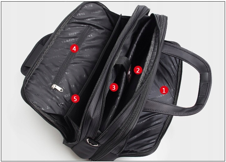 Сумка має два відділення. Перший вміщає велику кількість документів формату А4. У другому відділенні є м'яка кишеня для ноутбука. На додаток до ноутбука ви також можете встановити такі аксесуари, як блок живлення або миша. Спереду є досить містка кишеня з органайзером, ідеально підходить для ручок, мобільного телефону, планшета тощо.
