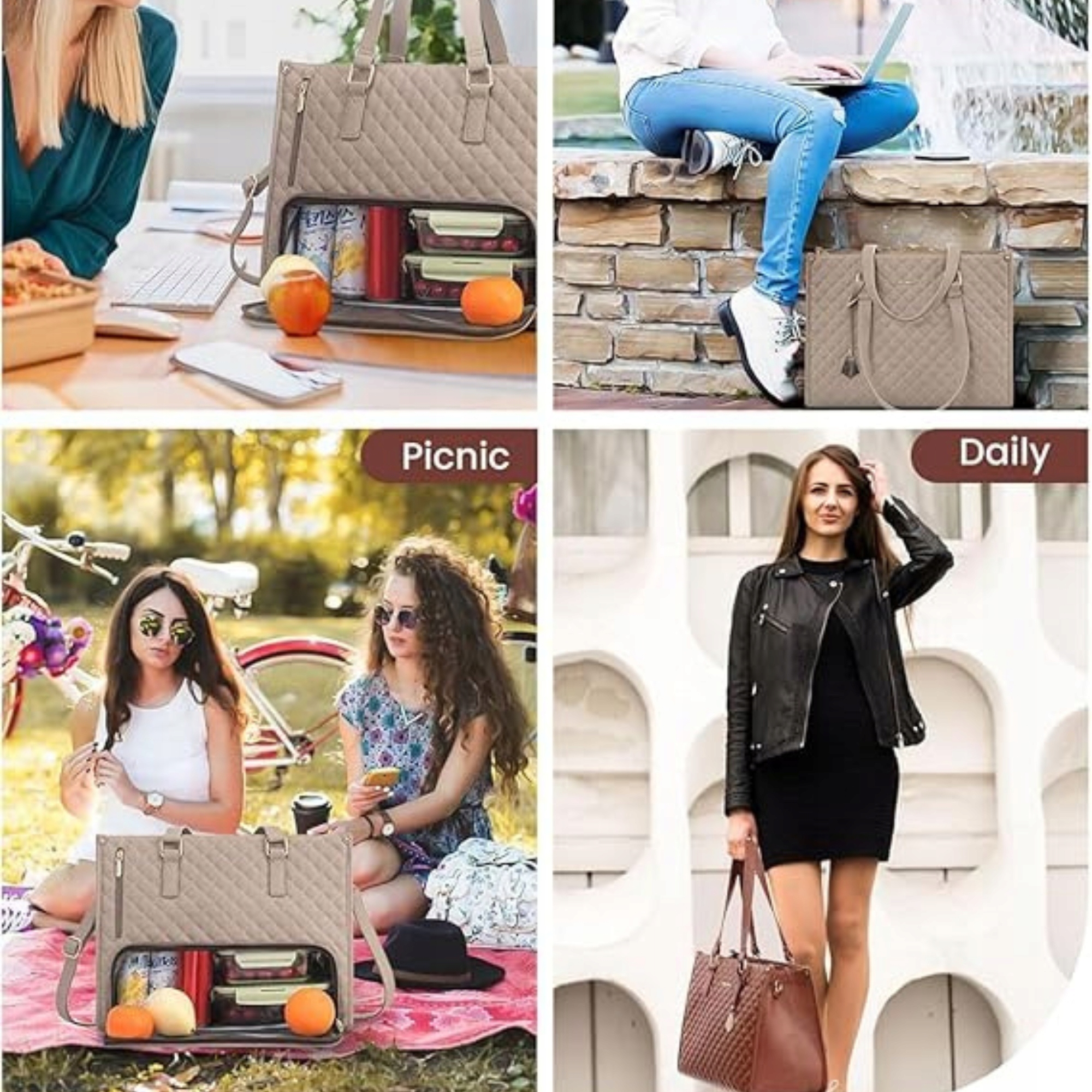 Сумка для обіду для роботи з ізоляцією та відсіком для ноутбука, вершки