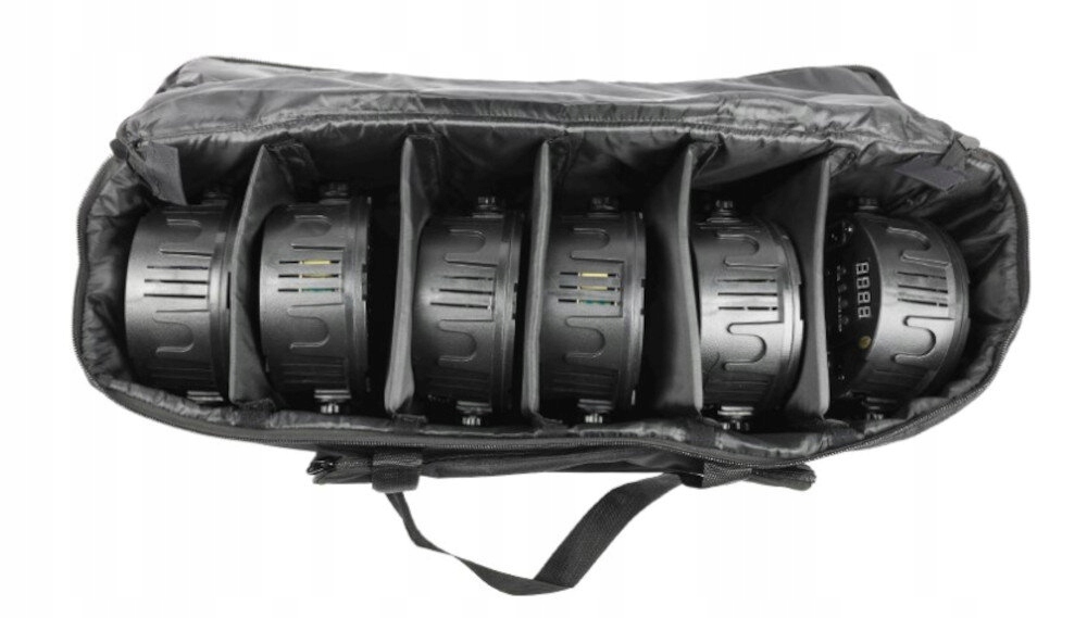 CABLE4ME Cover for 6 Pcs Flat Pars — це гарне покриття для 6 Slim Flat LED PAR spotlights. Завдяки міцній конструкції з водонепроникного ПВХ матеріалу Codura 600x600 він забезпечує надійний захист вашого обладнання від пошкоджень і несприятливих погодних умов. Внутрішнє покриття з технічної губки 10 мм гарантує додатковий захист. Сумка також добре підійде як чохол для інших пристроїв, напр. димогенератор, після зняття перегородок.