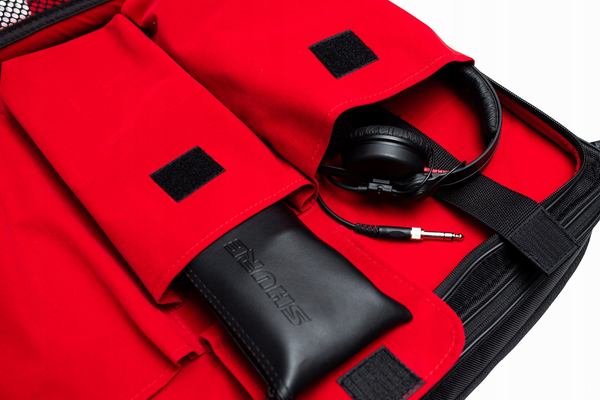 Сумка оснащена двома відділеннями. Основний призначений для контролера і менший з трьома кишенями для ноутбука, мікрофона, навушників і численними сітчастими кишенями для інших аксесуарів.